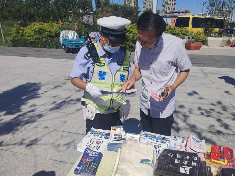 民警向市民介绍典型案例,提升市民交通安全意识。天津东疆综合保税区供图